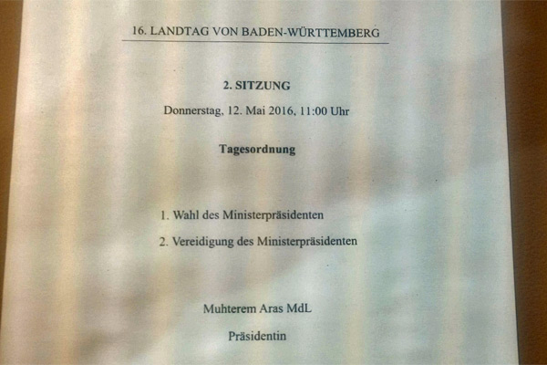 Stuttgart. Am heutigen Donnerstag, 12. Mai 2016 wurde Winfried Kretschmann im ersten Wahlgang wieder zum baden-württembergischen Ministerpräsidenten gewählt. 82 Abgeordnete stimmten für Kretschmann, 57 gegen ihn, es gab eine Enthaltung. Die grün-schwarzen Regierungsfraktionen verfügen zusammen über 89 Abgeordnete, ein Abgeordneter fehlte am heutigen Tag. Bei insgesamt 143 Abgeordneten im baden-württembergischen Landtag war eine Mehrheit von mindestens 72 Abgeordneten notwendig.