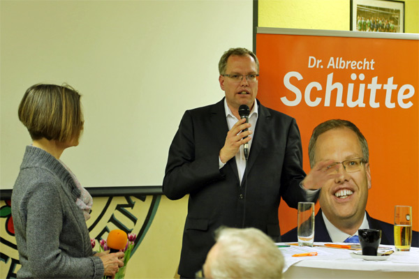 Schütte antwortete unter anderem auf Fragen nach der aktuellen Bildungspolitik. Die Abschaffung der verbindlichen Grundschulempfehlung sei ein großer Fehler der grün-roten Landesregierung gewesen. „Im Vordergrund steht nicht die Bevorzugung einer bestimmten Schulart – es geht um die Zukunft der betreffenden Schüler“, kommentierte er die von Grün-Rot bevorzugten Gemeinschaftsschule. Eine von der Landesregierung selbst in Auftrag gegebene Studie habe klar festgegestellt, dass gerade schwächere Schüler unter dieser Schulform leiden.
