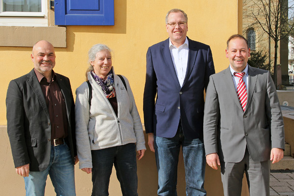Meckesheim. „Danke, dass Sie uns die Sonne mitgebracht haben“, so begrüßte Bürgermeister Hans-Jürgen Moos den CDU-Landtagskandidaten Dr. Albrecht Schütte auf dem Rathausplatz. Gemeinsam mit Gemeinderätin Inge Hanselmann (CDU) sowie Gemeinderat und Fraktionssprecher Michael Emmerling (SPD) stellte er im Ratssaal dem Landtagskandidaten anhand einer ausführlichen Präsentation Meckesheim und das seit 1974 dazugehörige Mönchzell mit all seiner Vielfalt und seinen Facetten vor. Den Beginn bildete eine Reise durch die Geschichte der im Jahre 822 erstmals im Lorscher Kodex erwähnten Gemeinde. Ein besonderes Ereignis stellt der dort erste erfolgreiche moderne Kaiserschnitt am 25. September 1881 dar.