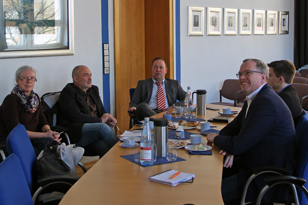 Thema im weiteren Gespräch waren die umfangreichen Sanierungsarbeiten, die in den letzten Jahren vorgenommen wurden. „Man kann sehen, dass sich in Meckesheim sehr viel tut“, sagte Schütte bezüglich den bald abgeschlossenen Baumaßnahmen. Ein nächster Schritt wird der Anschluss an das High-Speed fibernet Rhein-Neckar sein. Hier sieht Bürgermeister Moos ein Problem in Bezug auf das angedachte Zeitmanagement: „Wir müssen, um jedes Haus an das Netz anzuschließen, insgesamt 32 km Kabel verlegen. Aufgrund der damit verbundenen Straßenarbeiten bezweifle ich, dass man das in nur 10 Jahren realisieren kann.“ Es sei jedoch ein wichtiger Schritt für die weitere Stärkung der Infrastruktur der Industriegemeinde. Zwischenzeitlich werde man zum Teil die „letzte Meile“ der Telekom nutzen, um eine Übertragungsgeschwindigkeit von 50 Mbit zu erreichen.