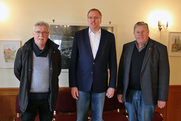 Dilsberg. Im Sitzungssaal des Ortschaftsrates, von dem man einen Blick auf die Dilsberger Burgbühne werfen kann, empfing Ortsvorsteher Bernhard Hoffmann gemeinsam mit Ortschaftsrat Wolfgang Hoefele den CDU-Landtagskandidaten Dr. Albrecht Schütte. Schütte nutzt aktuell die Zeit, um sich vor Ort zu informieren, da er sich, im Falle seiner Wahl in den Landtag von Baden-Württemberg, besonders um die Anliegen der Kommunen kümmern möchte. Genau dies ist auch Ortsvorsteher Hoffmann und Ortschaftsrat Hoefele ein Anliegen: „Verantwortliche Politiker müssen schauen, wo die Probleme sind und für die Menschen ansprechbar sein.“
