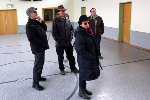 Beim Ortsrundgang besichtigte man die renovierungsbedürftige Turnhalle sowie die Sozialstation eingehend. Bekanntlich möchte die Gemeinde die Renovierung der Halle mit Mitteln aus dem ELR-Programm in Angriff nehmen. Da diese Mittel begrenzt sind, hoffe man auf zusätzliche Unterstützung von Land und Bund.