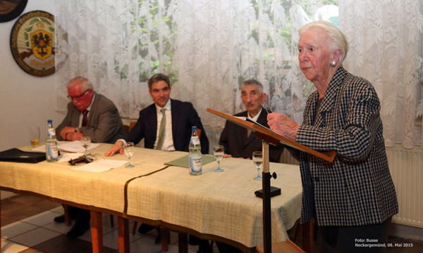 Neckargemünd. Auf die Idee zur Gedenkveranstaltung zum Kriegsende vor 70 Jahren hatte den CDU-Bundestagsabgeordneten Dr. Stephan Harbarth die Lobbacher Heimatforscherin Doris Ebert gebracht. Sie hatte ein ähnliches Projekt in ihrer Gemeinde initiiert, das Kinder und alte Menschen zusammenbrachte und in dem es ebenfalls um die wertvollen Erinnerungen der Senioren ging. Als Motto des Abends war „Gegen das Vergessen, für den Frieden“ gewählt worden und zu Wort kamen Zeitzeugen, die im Kindesalter das Ende des Krieges erlebt hatten. Durch ihre Schilderungen wurden die Bilder zum Ende des Zweiten Weltkrieges wieder lebendig. Dr. Günter Wüst, Doris Ebert und Roland Schilling sprachen stellvertretend für eine ganze Generation, die den Schrecken unmittelbar und lebensbedrohend erlebte. Eingeladen hatten die CDU-Ortsverbände in und um Neckargemünd gemeinsam.