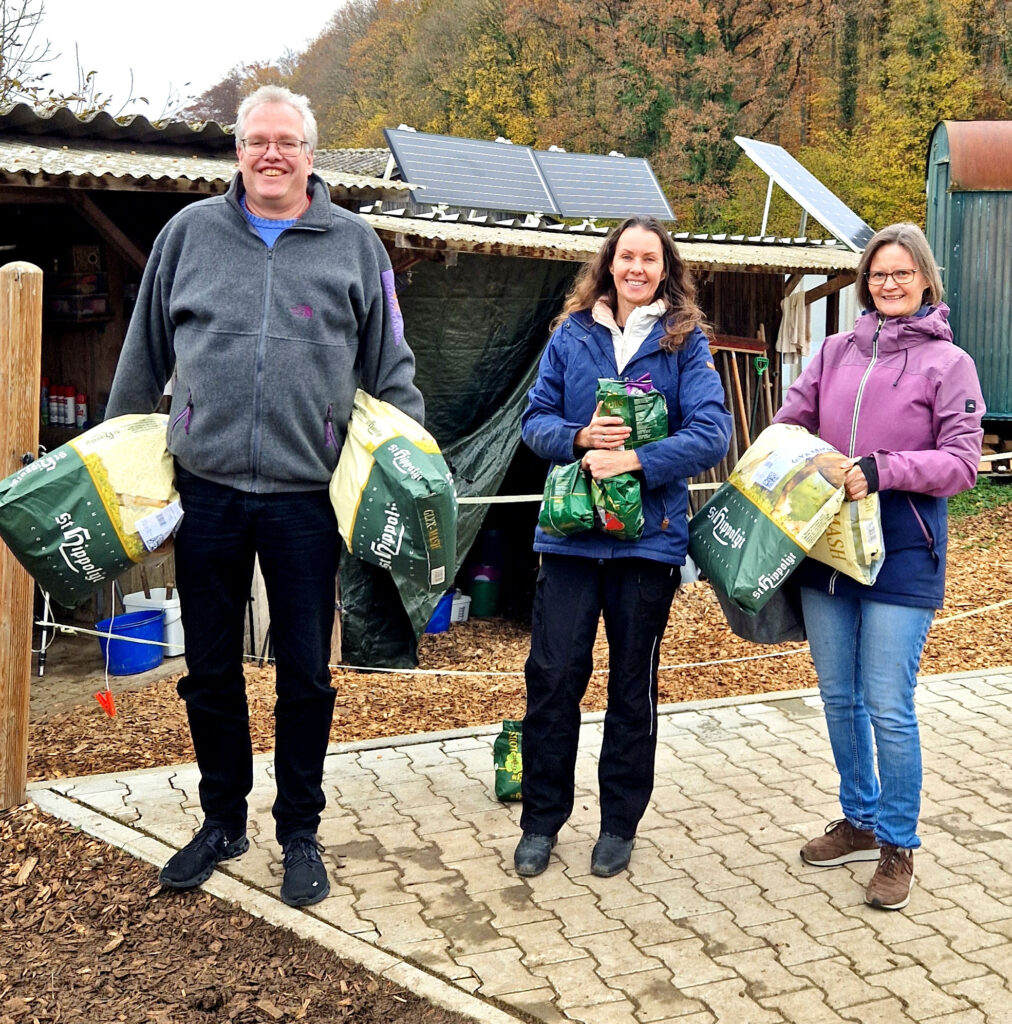 Am vergangenen Wochenende besuchte der Landtagsabgeordnete Dr. Albrecht Schütte (CDU) wieder einmal den Gnadenhof in Helmstadt, den er seit Jahren tatkräftig unterstützt. Begleitet wurde er von Stephanie Brecht (CDU). Auch in diesem Jahr brachte Schütte eine großzügige Futterspende mit – eine dringend benötigte Hilfe, besonders in der kalten Jahreszeit. Mit dem Futter im Gepäck machten die beiden Gäste sich direkt viele Freunde unter den tierischen Bewohnern.