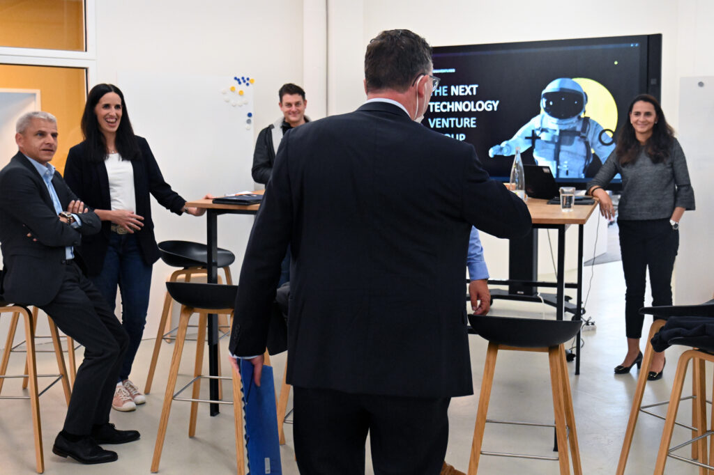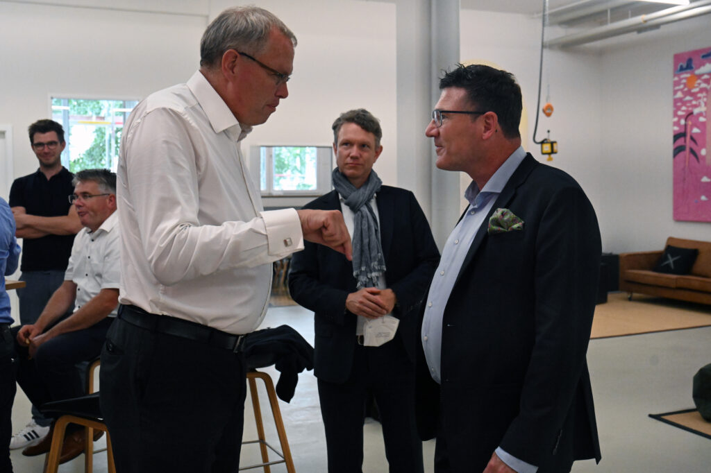 Wirtschaftsstaatssekretär Dr. Patrick Rapp hört aufmerksam zu, als die Jungunternehmer berichten, wie hoch die formalen Hürden zahlreicher Förderprogramme selbst für gut aufgestellte Startups sind. Denn schnell wird klar: Formale Hürden und überbordende Risikovermeidung kosten Zeit, die im Wettbewerb internationaler Gründer bei der Realisierung von Marktchancen entscheidend sein kann. „Mit klimaneutralen Brennstoffzellen-Generatoren können wir die Energieversorgung großer Rechenzentren oder von Krankenhäusern sichern“, erläutert Tech-Spezialist Dr. Bernhard Wienk-Borgert. „Aber wir müssen schnell sein“, so der Gründer. Denn die internationale Konkurrenz habe den deutschen Markt bereits im Visier.