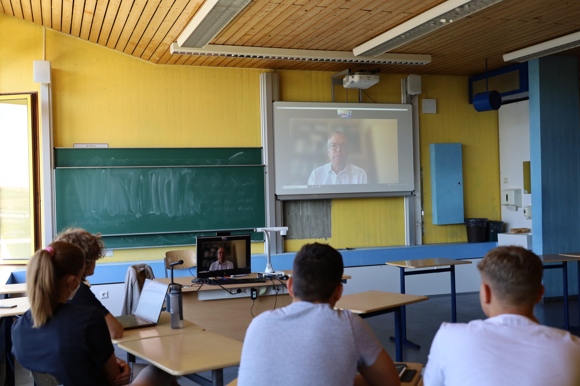 Allerdings musste Schütte sich beim Politik-Leistungskurs der 11. Klasse des Wilhelmi-Gymnasiums kurzfristig per Zoom zuschalten. Anhand einer kurzen Präsentation zeigte er auf, wie eine typische Arbeitswoche eines Landtagsabgeordneten aussieht. So wurde den Schülerinnen und Schülern klar, dass man nicht nur im Parlament und in den verschiedenen Ausschüssen in Stuttgart sein muss, sondern, dass ein Großteil der Arbeit im Wahlkreis vor Ort im Austausch mit Bürgern und Bürgerinnen stattfindet.