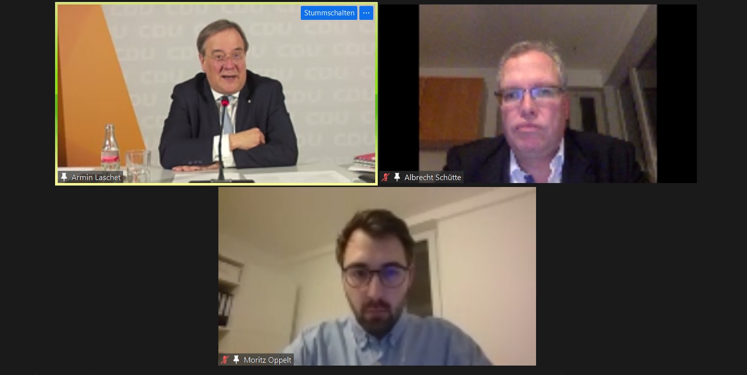 Nachdem bereits Norbert Röttgen auf Einladung des CDU-Landtagsabgeordneten Dr. Albrecht Schütte zu einer Videokonferenz mit Mitgliedern der CDU Rhein-Neckar gekommen war, stand zu Beginn des neuen Jahres 2021 auch Armin Laschet, Ministerpräsident des Landes Nordrhein-Westfalen und Kandidat für den CDU-Bundesvorsitz den CDU-Mitgliedern Rede und Antwort. Fast 50 Mitglieder konnte Schütte – selbst Delegierter für den Bundesparteitag – zur rund einstündigen Diskussion mit Laschet begrüßen. Ein Zeichen, dass die Wahl des Vorsitzenden der CDU Deutschlands auf dem corona-bedingt digitalen Bundesparteitag am 15. und 16. Januar eine Richtungsentscheidung sei, so Schütte zu Beginn: „In diesem Jahr endet die dann 16-jährige Amtszeit von Angela Merkel als Bundeskanzlerin der Bundesrepublik Deutschland. Die Frage, wie wir unsere Partei und unser Land für die nächsten zehn bis zwanzig Jahre aufstellen, ist von eminenter Bedeutung.“ Umso mehr freue es ihn, dass Ministerpräsident Armin Laschet – trotz eines vollen Terminkalenders – zu einer digitalen Diskussionsveranstaltung zugesagt habe.