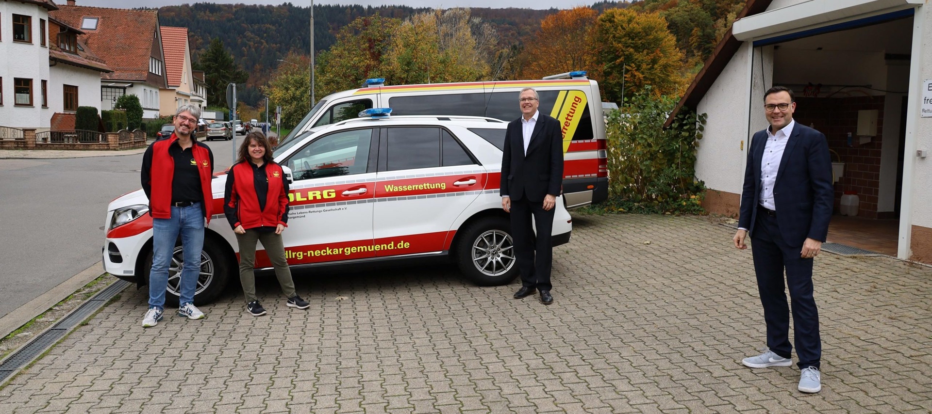 Landtagsabgeordneter Dr. Albrecht Schütte und Siegfried Lorek MdL, Sprecher für Katastrophenschutz, im Dialog mit der DLRG Neckargemünd.