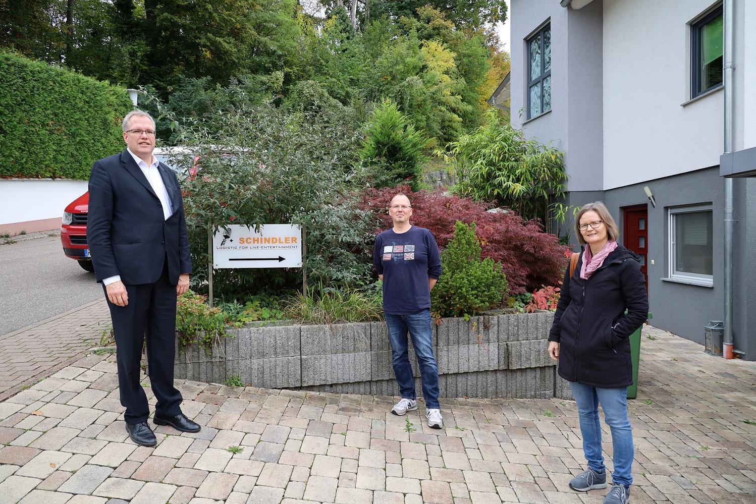 Im Gespräch mit Inhaber und Geschäftsführer Thomas Schindler von Schindler Logistik, Experte für Event-Logistik, wurde nochmals deutlich, wie schlecht die Lage in der Event- und Messeszene momentan ist. Er habe seit Beginn der Corona-Pandemie im März Umsatzeinbußen von fast 90%, so Schindler. Zwar habe die Soforthilfe des Landes sowie die Überbrückungshilfe geholfen, einige Monate zu überstehen, allerdings habe auch er Mitarbeiter entlassen müssen. Schütte betonte, dass es gerade für die hart getroffenen Branchen im Event-, Messe- oder Schaustellergewerbe weitere Spezial-Hilfsprogramme des Landes geben wird: „Anders als in vielen anderen Branchen sind für Sie die verlorenen Umsätze nicht nachholbar. Wir müssen deshalb unbedingt verhindern, dass eigentlich gesunde und gut wirtschaftende Unternehmen wie Ihres durch Corona ihre Existenz verlieren.“ Schindler pflichtete Schütte bei, stellte abschließend allerdings auch heraus, dass seine Branche nicht nur Hilfsprogramme benötige: „Wir brauchen dringend eine Perspektive, um bis zum Frühjahr 2021 durchzuhalten. Auch deshalb wünsche ich mir von Manchen etwas mehr Disziplin bei der Einhaltung der Corona-Maßnahmen, so dass auch wir durch diese Krise kommen. Wir sind zwar eine kleine Firma, aber wir bewegen normalerweise viel.“