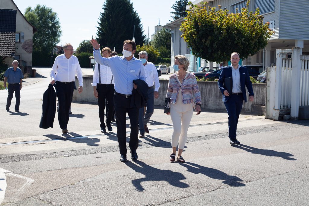 Für einen Besuch in Helmstadt-Bargen nutzte jüngst die baden-württembergische Wirtschaftsministerin Dr. Nicole Hoffmeister-Kraut auf Initiative des CDU-Landtagsabgeordneten Dr. Albrecht Schütte die parlamentarische Sommerpause. Nach einem kurzen Gespräch mit Bürgermeister Wolfgang Jürriens sowie Haupt- und Bauamtsleiter Joachim Weschbach im wunderschön und stilvoll gestalteten Café „Blauer Flügel“ von Familie Kuch über aktuelle Anliegen und Planungen der Gemeinde, nahm sich die Wirtschaftsministerin ausgiebig Zeit, um gemeinsam mit Gemeinde- und Ortschaftsräten aus Helmstadt, Bargen und Flinsbach das mittlerweile wieder genutzte ehemalige „MWH“-Gelände zu besichtigen.