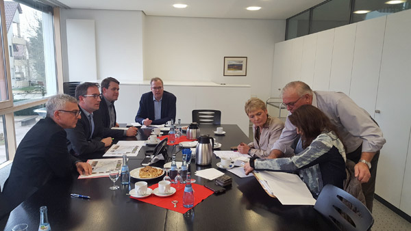 Bildunterschrift: (Archivbild): Besprechung im Rathaus von Bad-Rappenau mit Staatssekretärin Friedlinde Gurr-Hirsch (3. v.r.) und Dr. Albrecht Schütte (4. V.r.), sowie Oberbürgermeister Sebastian Frei (Bad Rappenau, 2. v. l.), Bürgermeisterin Tanja Grether (Neckarbischofsheim, 1.v.r.), Lutz Mai (Erster Landesbeamter Heilbronn, 1. v.l.).