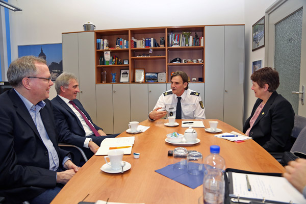 Klein, Philippi und Dr. Schütte im Gespräch mit Polizeipräsident Stenger
