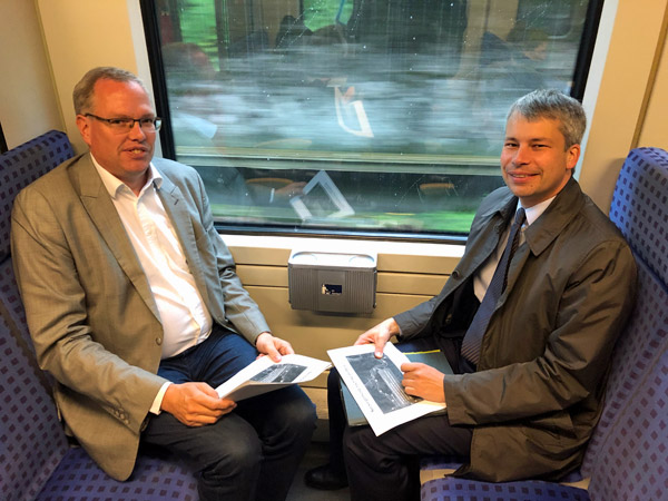 Heidelberg/ Neckargemünd/ Bammental. Auf Initiative des Landtagsabgeordneten Dr. Albrecht Schütte (CDU) war Steffen Bilger MdB, Parlamentarischer Staatssekretär beim Bundesminister für Verkehr und digitale Infrastruktur, in den Wahlkreis Sinsheim gekommen. Zwischen einem Termin am Heidelberger Hauptbahnhof und einem Gespräch im Rathaus in Waibstadt, sprachen die Politiker bei einer Fahrt in der S-Bahn über verschiedene Themen, die die Region betreffen.