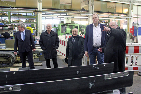 Um sich vor Ort über dieses Beispiel eines mehr als erfolgreichen Mittelständlers zu informieren, besuchte der Landtagsabgeordnete Dr. Albrecht Schütte (CDU) gemeinsam mit den Stadträten Karl Braun und Dietmar Lamprecht das Werk und sprach mit Geschäftsführer Johann Philipp Dilo und Dr.-Ing. Joachim Leger, dem technischen Leiter der Maschinenfabrik und Mitglied der Geschäftsleitung.