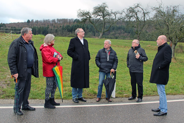 Dilsberg/Dilsbergerhof. Aufgrund eines erneuten Hinweises auf die Situation des Verkehrs zwischen Dilsberg und Dilsbergerhof hatte der Landtagsabgeordnete Dr. Albrecht Schütte (CDU) einen Vor-Ort-Termin angesetzt. Der Neckargemünder Bürgermeister Frank Volk, Ortsvorsteher Bernhard Hoffmann, Stadtrat Klaus Rupp sowie Rüdiger Ruf und Anna-Magdalena Oehne-Marquard vom Ortschaftsrat Dilsberg erläuterten dem Landtagsabgeordneten die problematische Lage.