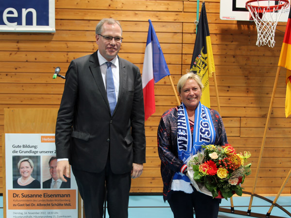 Zuzenhausen. Dr. Susanne Eisenmann, seit Mai 2016 Ministerin für Kultus, Jugend und Sport des Landes Baden-Württemberg, sprühte förmlich vor Energie während ihrer 45-minütigen Rede auf dem Herbstempfang des Landtagsabgeordneten Dr. Albrecht Schütte (CDU / Wahlkreis Sinsheim), der in dieser Woche in der Häuselgrundhalle Zuzenhausen stattfand.