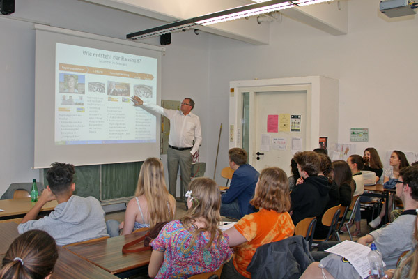 Zahlreiche Fragen hatten die Schülerinnen und Schüler, die zum Teil gerade das schriftliche Abitur hinter sich gebracht haben, an den Abgeordneten. So ging es um ein bundeseinheitliches Abitur. Schütte lehnte dies ab, da man sich dabei auf ein niedriges Niveau einigen werde. Ein Vergleich der Niveaus der einzelnen Länder, dort wo möglich, sei aber überlegenswert. Auch die Diskussion um G8/G9 interessierte viele. „Bei der Landtagswahl haben wir uns als CDU für eine Wahlfreiheit eingesetzt. Die Grünen waren strikt für G8. Die jetzige Situation mit dem Erhalt der 44 Modellschulen, aber keiner weiteren G9-Standorte spiegelt also das Wahlergebnis wider.“ Auch wenn es in dieser Legislaturperiode wohl keine Änderung mehr gäbe, werde er sich weiterhin für die Wahlfreiheit einsetzen. Die dazu aktuell in Bayern vorgeschlagene Idee halte er allerdings für weniger praktikabel.