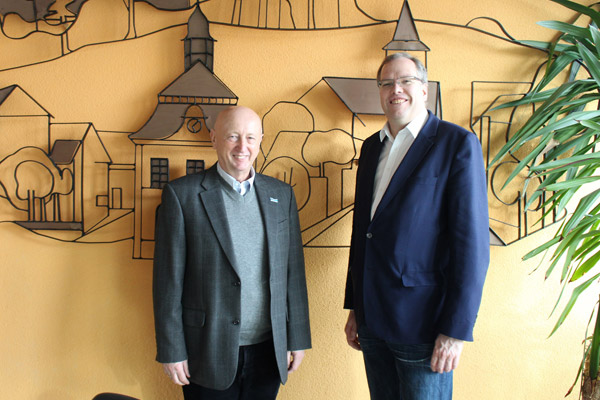 Zuzenhausen. Bevor man gemeinsam die Firma „Amis“ besuchte, traf Landtagsabgeordneter Dr. Schütte MdL Bürgermeister Dieter Steinbrenner zu einem offenen Gespräch auf dem Rathaus Zuzenhausen. Eines der wichtigsten Themen auf der Agenda der Gemeinde, so Bürgermeister Steinbrenner, sei die Schaffung von neuem Wohnraum für junge Familien: „Mir blutet das Herz, wenn wir Familien mit Interesse an einem Bauplatz abweisen müssen und sie damit aus dem Ort verlieren.“ Durch die Attraktivität der Gemeinde seien die bisherigen Neubaugebiete innerhalb kürzester Zeit belegt, so Steinbrenner.