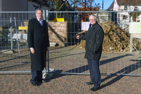 Zeitgleich unterstütze das Entwicklungsprogramm Ländlicher Raum (ELR) Maßnahmen, die mit der Schaffung von Arbeitsplätzen verbunden seien. Über den jüngst erteilten Zuschussbeschied für die ortsansässigen Firma Wieland Anlagen- und Apparatebau GmbH freue man sich sehr. Ebenfalls vom Land unterstützt werde der Ausbau des schnellen Internets, wies Schütte auf ein weiteres wichtiges Thema hin. „Allein im Haushalt 2017 haben wir auf Landesebene zusätzlich 100 Millionen Euro für die Digitalisierung eingestellt.“ Dabei sei das Ziel des Landes eine Versorgung aller Haushalte direkt mit Glasfaser. Im Rhein-Neckar-Kreis haben der Kreis selbst sowie sämtliche Mitgliedsgemeinden den Zweckverband High-Speed-Netz Rhein-Neckar gegründet. Bürgermeister Bösenecker führte aus, dass bis Frühjahr 2017 die Tiefbauarbeiten für die „Backbone“-Trasse, mit der das schnelle Internet zunächst einmal in die Gemeinde kommt, durchgeführt werden sollen. Für die weiteren Anschlussarbeiten bis zu den Haushalten werde derzeit die Feinplanung erstellt. Ziel sei der schnellstmögliche Anschluss der Verteilerkästen, damit dann jeder mit bis zu 50 Mbit/s surfen könne.Nach den Gesprächen auf dem provisorischen Rathaus folgte eine Besichtigung der Baustelle, wo das moderne Rathaus entsteht. Vor Ort zeigte Bösenecker die Fortschritte und erklärte die Sanierung des historischen Gebäudes verbunden mit einem neuen Anbau. Allerdings sei für letzteren eine Pfahlgründung erforderlich, um im Schwemmsandboden die notwendige Tragfähigkeit zu gewährleisten. Dazu musste die Fläche zunächst für die Maschine, die die Pfähle setzt, entsprechend befestigt werden, erklärte der Bürgermeister bei der Besichtigung der Baustelle. Im Ortsmittelpunkt kam das Gespräch schnell auf die innerörtliche Entwicklung. Mit einer Bäckerei und einer Metzgereifiliale, dem Dorfladen, dem Pluspunkt der Liebenzeller Gemeinschaft, der Postfiliale sowie verschiedenen Gaststätten bleibe der Ortskern laut Bösenecker für die Bürger attraktiv, was ihn sehr freue. Landtagsabgeordneter und Bürgermeister waren sich einig, dass dies mit Sicherheit nicht der letzte Vor-Ort Termin war. „Auf regelmäßige Besuche aller Gemeinden und den stetigen Kontakt mit Bürgermeistern und Gemeinderäten lege ich besonderen Wert. Gerne unterstütze ich die Anliegen und Planungen der Kommunen in meinem Wahlkreis“, unterstrich Schütte zum Abschluss seines Besuches.