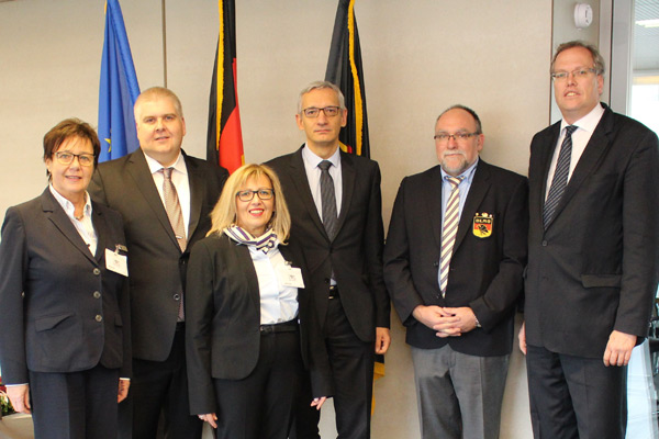 Bildunterschrift (von links nach rechts): Ursula Jung, Vizepräsidentin des DLRG-Landesverbandes Württemberg, Armin Flohr, Präsident des DLRG-Landesverbandes Württemberg, Ingrid Lehr-Binder, Präsidentin des DLRG-Landesverbandes Baden, Martin Jäger, Staatssekretär im Ministerium für Inneres, Digitalisierung und Migration, Heinz-Jürgen Thöne, Vizepräsident des DLRG-Landesverbandes Baden und Dr. Albrecht Schütte MdL, Mitglied des Finanzauschusses und Vorsitzender der DLRG Bammental.