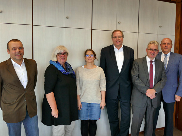 Auch beim Besuch der nächsten Schule, des Adolf-Schmitthenner-Gymnasiums, stieß dieser Vorschlag von Karl-Wilhelm Röhm bei Schulleiter Harald Frommknecht und seinem Leitungsteam auf Zustimmung. Am Neckarbischofsheimer Gymnasium, wo man in neun Jahren zum Abitur gelangt, wolle man den Schülerinnen und Schülern in der Oberstufe eine stärkere Auswahl der Vertiefungsfächer ermöglichen. „Die Karriere eines künftigen Ingenieurs soll nicht an Französisch scheitern, genauso wenig wie Physik der Karriere eines Sozialwissenschaftlers schaden sollte.“ Derzeit sei die Schwerpunktsetzung stark eingeschränkt, bestätigte auch der CDU-AK-Vorsitzende Karl-Wilhelm Röhm. Er würde den Gymnasien künftig gerne mehr Gestaltungsoptionen bieten. Allerdings, so waren sich alle einig, stehe das Gymnasium für eine breite Allgemeinbildung, wozu eine völlige freie Wahl der Fächer nicht passe. Natürlich war beim Gespräch an der Neckarbischofsheimer Schule, an welchem auch der Personalrat teilnahm, der Schülerandrang aufgrund von G9 ein Thema. Grundsätzlich wurde das Konzept der CDU aus dem vergangenen Wahlkampf – nach einer gemeinsamen Phase bis Klasse 6 zwischen G8 und G9 zu entscheiden – von allen als positiv gesehen. „Wir haben die Wahl nicht gewonnen und konnten daher eine Wahlfreiheit an allen Gymnasien nicht durchsetzen“, fassten Röhm und Schütte die Situation zusammen. Man sei allerdings zufrieden, dass die bestehenden G9-Standorte erhalten werden konnten. Sehr zufrieden war der lokale Abgeordnete Schütte, zu erfahren, dass inzwischen der Busverkehr auch über die Kreisgrenze hinweg, läuft.