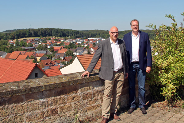 Den Abschluss des Vor-Ort-Termins bildete ein Rundgang durch die historische Altstadt von Hilsbach. Gund informierte Schütte über die Geschichte der ehemals selbstständigen Stadt, die seit 1971 zur Großen Kreisstadt Sinsheim gehört .
