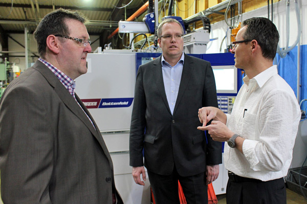 Sinsheim-Dühren. „Eine gute Schulbildung und Ausbildung ist für den Mittelstand enorm wichtig“, so der Geschäftsführer Knut Meissner vom Unternehmen „Schmitt und Meissner GmbH“ im Gewerbegebiet „Hinter Mühle“ in seiner Begrüßung an den Landtagskandidaten Dr. Albrecht Schütte, der sich vor Ort über die Anliegen des Mittelstandes informierte. „Schmitt und Meissner“ ist ein Spezialist für das Spritzgießen von Kunststoffen. Das mittelständische Unternehmen beschäftigt ca. 100 Mitarbeiter im Dreischichtbetrieb und liefert Einzelteile aus Kunststoff an Automobilzulieferer. Eine wesentlichen Herausforderung für das Unternehmen ist die Ausbildung beziehungsweise Suche nach qualifiziertem Personal.