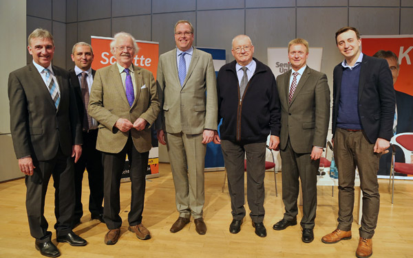 Begonnen hatte die Veranstaltung unter der Diskussionsleitung von CDU-Stadtrat Werner Philipp mit einer rund einstündigen Talkrunde mit den CDU-Landtagskandidaten Karl Klein MdL (Wahlkreis Wiesloch), Dr. Albrecht Schütte (Wahlkreis Sinsheim) und Thomas Birkenmaier (Wahlkreis Schwetzingen). Hierbei ging es unter anderem um die grün-rote Polizeireform, die viel Kritik einstecken musste, und um die Bildungspolitik. Wie bei Wulff und Ziemiak so standen auch bei den drei Landtagskandidaten nicht lange Reden im Mittelpunkt, sondern die Zuhörer hatten nach einleitenden Worten die Möglichkeit, zahlreiche Fragen zu stellen, was für einen munteren und abwechslungsreichen Veranstaltungsablauf sorgte. Das Schlusswort sprach der CDU-Ortsverbandsvorsitzende Adrian Seidler. Mit dem Singen der deutschen Nationalhymne wurde die Veranstaltung beschlossen.