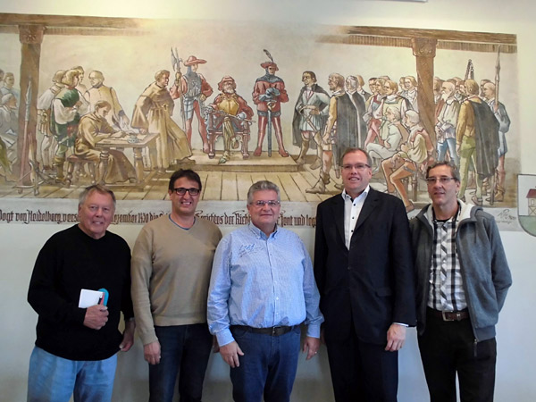 Auf dem Foto von links nach rechts: Adam Sutter, CDU-Vorsitzender Rüdiger Heiß, Bürgermeister Otto Eckert, Landtagskandidat Dr. Albrecht Schütte und Artur Zimmermann.