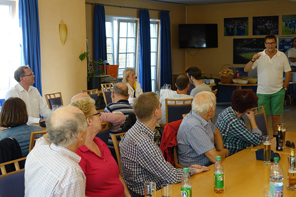 Mit von der Partie war Marco Siesing, Ortsoberhaupt von Eschelbronn, der seine Gemeinde auf der eigenen Gemarkung kurz vorstellte. Weiter ging es auf der Strecke durch den Wald, in dem der ehemalige Minister des ländlichen Raumes und gelernte Forstwirt Peter Hauk auf zahlreiche interessante Aspekte von Forst und Forstwirtschaft hinwies. Von einigen Aussichtspunkten konnten die Wanderer den wunderbaren Ausblick auf den Odenwald und die Hügellandschaft des Kraichgaus genießen. Zielpunkt war das TSG-Clubhaus „Fairplay“, in dem Herr Hess von der örtlichen Metzgerei mit fleißigen Helfern bereits ein reichhaltiges warmes Buffet vorbereitet hatte.