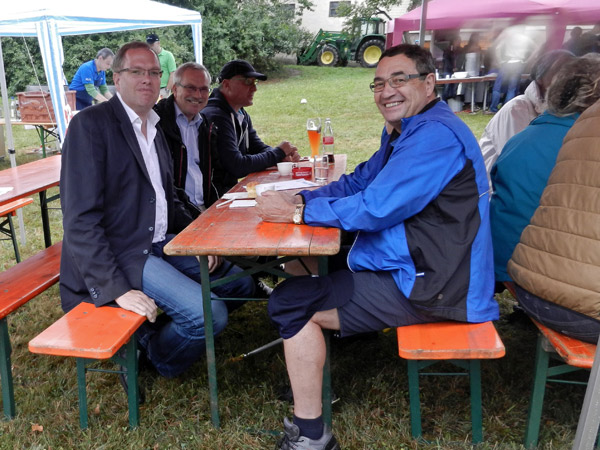 Heiligkreuzsteinach. Der in Bammental wohnhafte CDU-Landtagskandidat Dr. Albrecht Schütte besuchte, obwohl seine Heimatgemeinde auch Kirchweih hatte, zusammen mit der örtlichen CDU-Spitze das Eiterbacher Lindenfest. Uwe Ballmann, der Vorsitzende der gastgebenden Eiterbacher Sängerfreunde, hieß den prominenten Gast herzlich willkommen und informierte ihn ausgiebig über das „Eiterbacher Sangesleben“. Da auch die in Eiterbach wohnenden syrischen Asylbewerber anwesend waren, war die aktuelle Asyldebatte natürlich auch ein Thema. Der CDU-Ortsvorsitzende merkte an, dass sich die aus Aleppo stammende syrische Familie, die im alten Schulhaus in Eiterbach untergebracht ist, innerhalb kurzer Zeit sehr gut integriert habe. Hilfreich und lobenswert sei hierbei sicherlich das überaus große Engagement der Bevölkerung gewesen.
