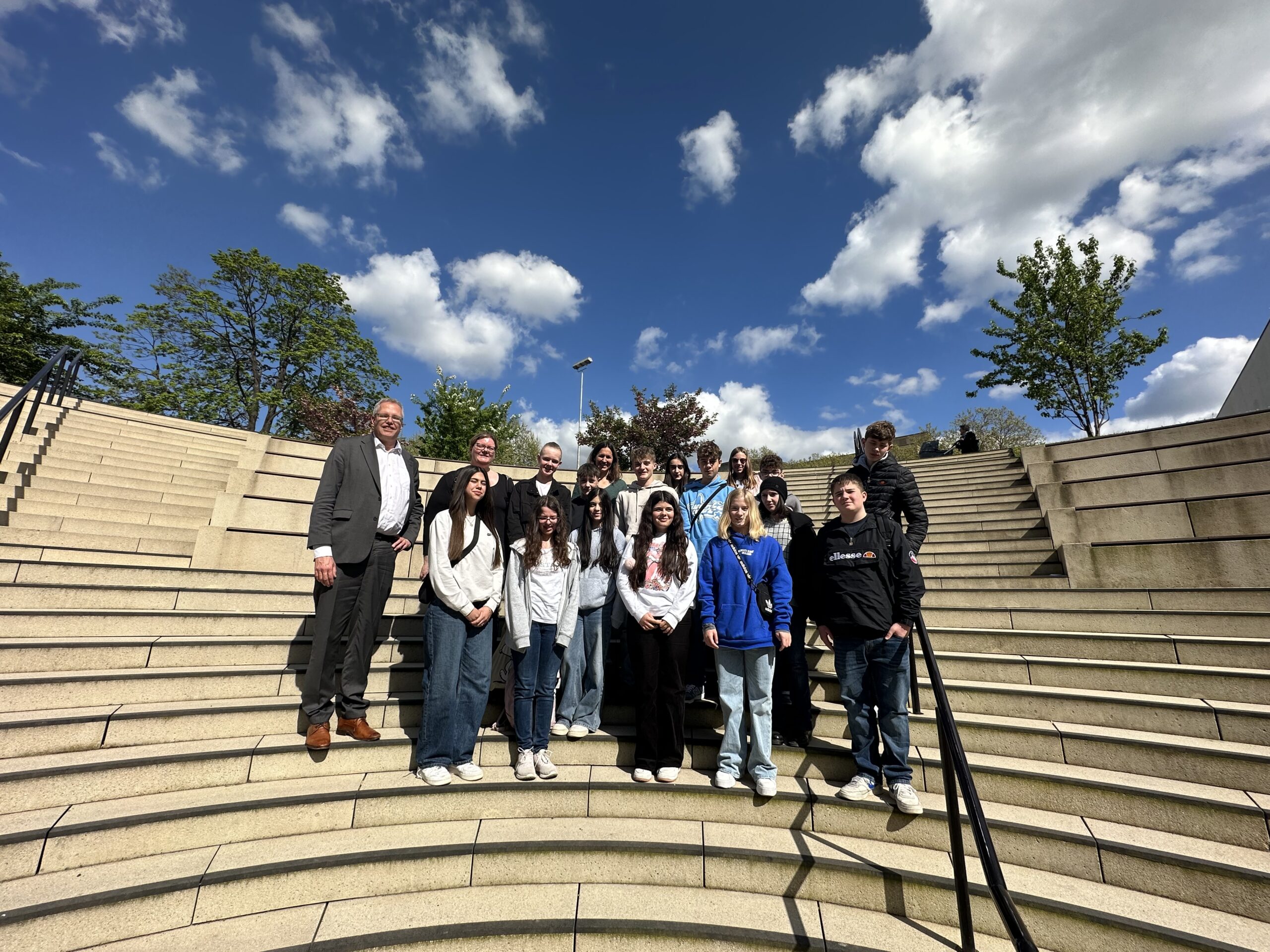 Im Anschluss konnten die Schülerinnen und Schüler beim Abgeordnetengespräch all ihre Fragen an Schütte stellen. Nach einer kurzen Einführung ging es um Abläufe im Landtag und um seine Arbeit als Abgeordneter. Die Schülerinnen und Schüler interessierten sich zudem für Schüttes Weg in die Politik, seine Meinung zur Cannabislegalisierung oder zur AfD. Auch zu Errungenschaften für seine Region und im Land wurde der Abgeordnete befragt. Schütte verwies auf Zuschussprogramme wie etwa zur Schulsanierung, die er einerseits im Finanzausschuss aufstocken bzw. durchsetzen konnte und von denen dann auch Gemeinden im Wahlkreis wie etwa Schönau/Altneudorf, Bammental oder Neckarbischofsheim bereits profitieren konnten. Das Gespräch schloss Schütte mit einem Angebot: „Wer sich für die Abläufe und die parlamentarische Arbeit interessiert, lade ich herzlich ein, ein Praktikum zu machen. Entweder für einen Tag oder auch für eine Woche. Ich freue mich, euch in eurem Interesse zu unterstützen. Meldet euch gerne.“