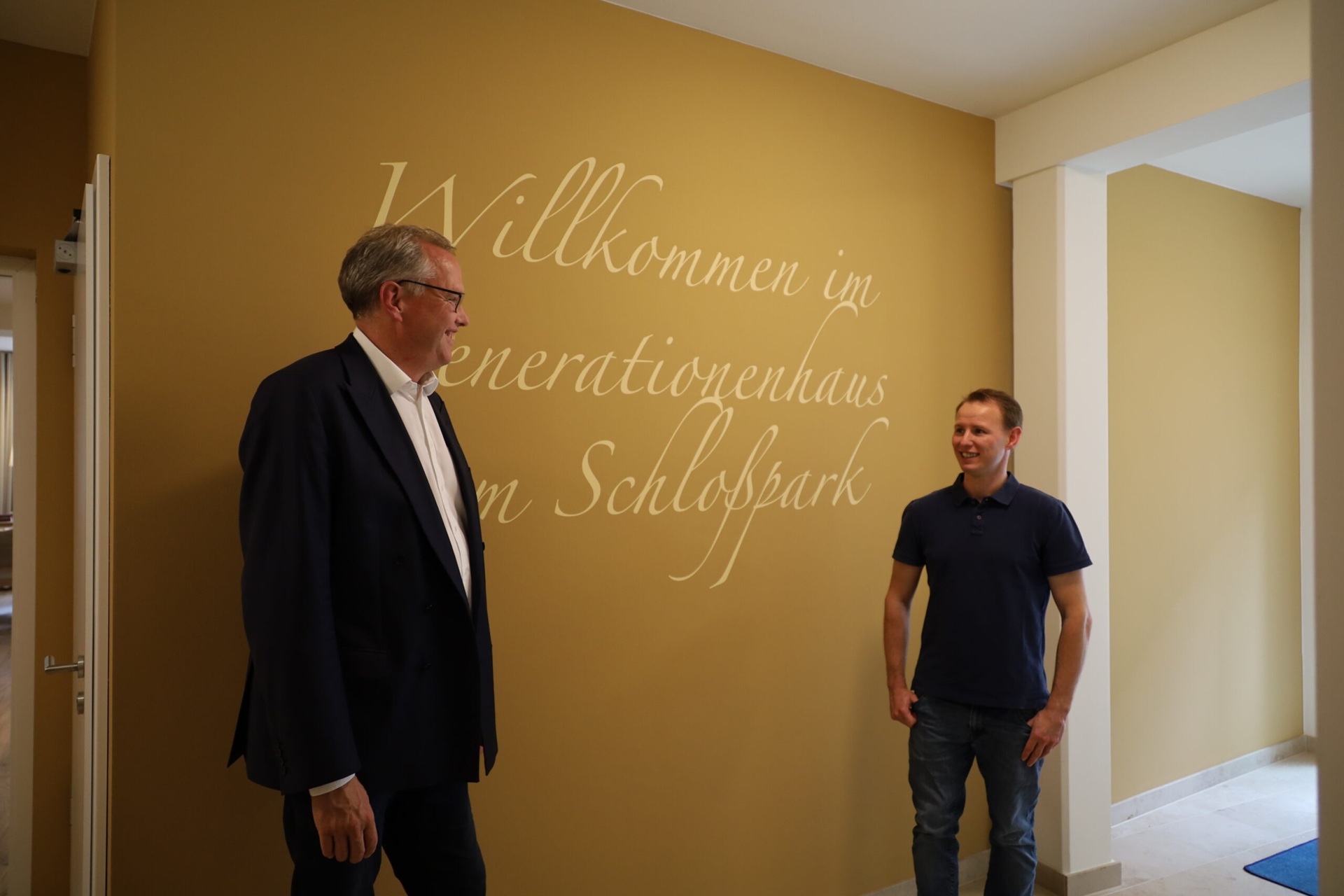 Die Schaffung der Tagesstätte am Schlosspark in Angelbachtal mit behindertengerechten Wohnungen durch die Gebrüder Dreher wurde 2018 mit einer Summe in Höhe von 347.875 Euro vom Land gefördert. Nach der Fertigstellung nahm sich der Abgeordnete des Wahlkreises Sinsheim, Dr. Albrecht Schütte (CDU), gerne die Zeit, sich mit Vertretern der Tagesstätte auszutauschen.