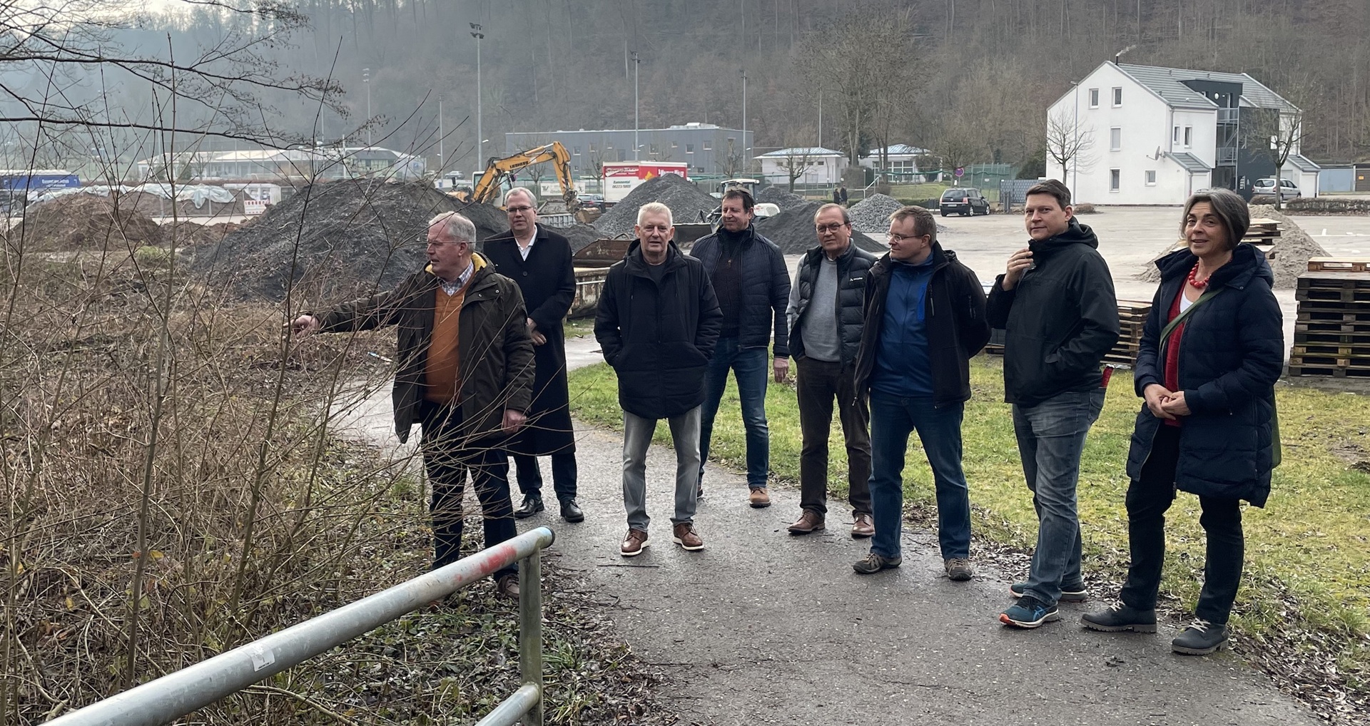 Bildunterschrift: Vor Ort Termin am Festplatz v.l.n.r. Wilhelm Müller, Albrecht Schütte, Friedbert Ohlheiser, Hermann Zimmermann, Rainer Stetzelberger, Andreas Pfeiff, Reinhard Wüst, Cordula Dörfer
