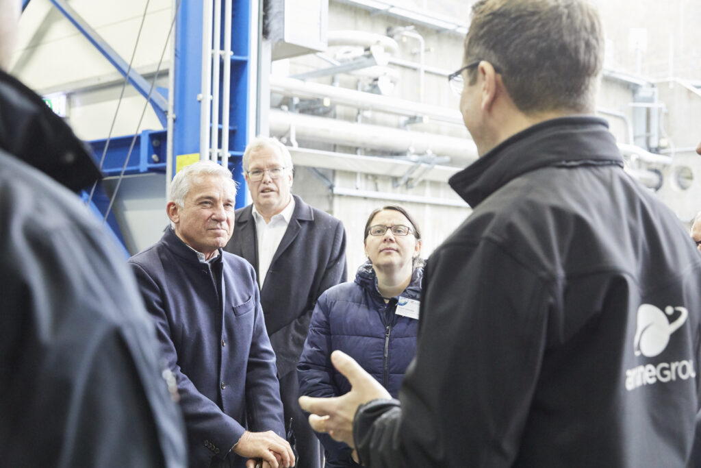 Empfangen wurden die Teilnehmerinnen und Teilnehmer von Geschäftsführer Peter Froeschle sowie Prof. Dr. Peter Middendorf, Institutsleiter für Flugzeugbau der Universität Stuttgart und anschließend durch die multifunktionale Halle geführt, welche als offener Co-Working Space dient. Durch die Zusammenarbeit in Projektgruppen wird hier ein Kompetenztransfer über die Firmen- und Institutsgrenzen hinweg und damit unmittelbar unter einem Dach von Wissenschaft, Wirtschaft und Start-Ups ermöglicht. „Mit der Arena 2036 gelingt es, die Stärken von Forschungseinrichtungen und Firmen von Start-Ups bis zu OEMs vorbildlich zusammen zu bringen und so dafür zu sorgen, dass Baden-Württemberg auch zukünftig Spitze bei der Produktion im Mobilitätssektor ist“, so Schütte abschließend.