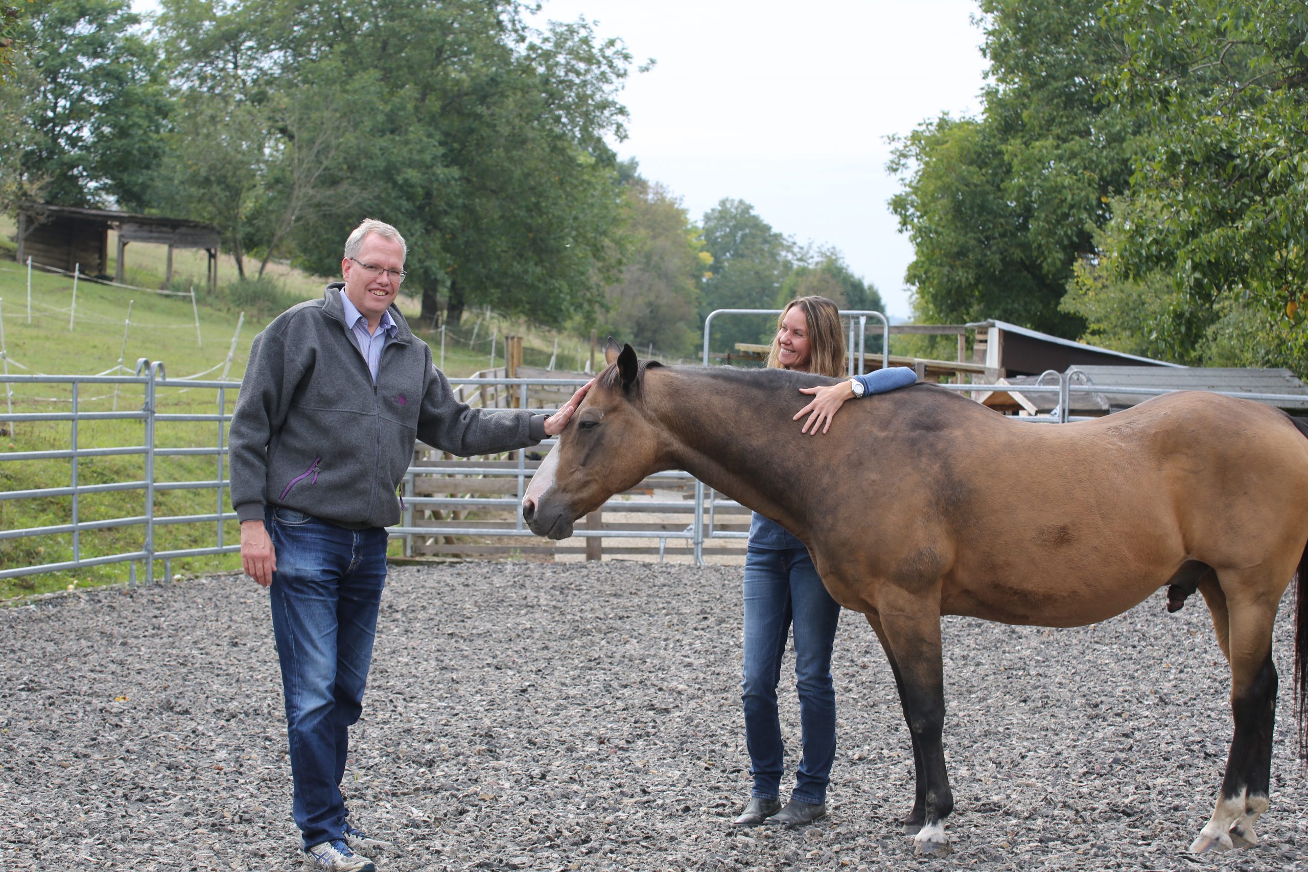 Helmstadt. „Manchmal gibt es gute und manchmal gibt es schlechte Tage“, sagte Tamara Schäfer, Initiatorin des „Gnadenhof Tierhilfe Kraichgau e.V.“, bei dem Besuch des Landtagsabgeordneten Dr. Albrecht Schütte (CDU). Seit mittlerweile vier Jahren besucht Schütte den Gnadenhof regelmäßig und brachte wie immer zwei Säcke Pferdefutter mit. Nicht nur die Futterspende des Parlamentariers, sondern auch die aktuelle Nachricht, dass man einen neuen Container für den Pferdemist gespendet bekomme, machte diesen Tag zu einem der guten.