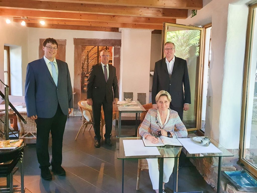 Für einen Besuch in Helmstadt-Bargen nutzte jüngst die baden-württembergische Wirtschaftsministerin Dr. Nicole Hoffmeister-Kraut auf Initiative des CDU-Landtagsabgeordneten Dr. Albrecht Schütte die parlamentarische Sommerpause. Nach einem kurzen Gespräch mit Bürgermeister Wolfgang Jürriens sowie Haupt- und Bauamtsleiter Joachim Weschbach im wunderschön und stilvoll gestalteten Café „Blauer Flügel“ von Familie Kuch über aktuelle Anliegen und Planungen der Gemeinde, nahm sich die Wirtschaftsministerin ausgiebig Zeit, um gemeinsam mit Gemeinde- und Ortschaftsräten aus Helmstadt, Bargen und Flinsbach das mittlerweile wieder genutzte ehemalige „MWH“-Gelände zu besichtigen.
