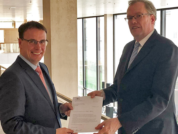 Auf dem Foto von links nach rechts: Kultusstaatssekretär Volker Schebesta MdL und Dr. Albrecht Schütte MdL.