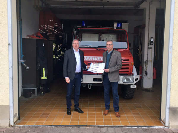 Dr. Albrecht Schütte nutzte weiterhin den Termin, um sich das Bauvorhaben „Feuerwehrhaus“ vor Ort erläutern zu lassen. Da die Zuschusslage nicht so hoch sei wie von der Kommune erwartet, habe Schütte seine Unterstützung beim Ausloten weiterer Fördermöglichkeiten zugesagt. Das notwendige Grundstück wurde bereits baureif gemacht, der Bauantrag bereits gestellt und in Feuerwehr und Kommune warte man nun auf den „roten Punkt“. In betont partnerschaftlicher Atmosphäre nutzten Bürgermeister Zimmermann und der Landtagsabgeordnete Dr. Schütte die Gelegenheit, auch auf Details des Bauvorhabens Feuerwehrhaus und auf weitere Projekte der Gemeinde einzugehen.