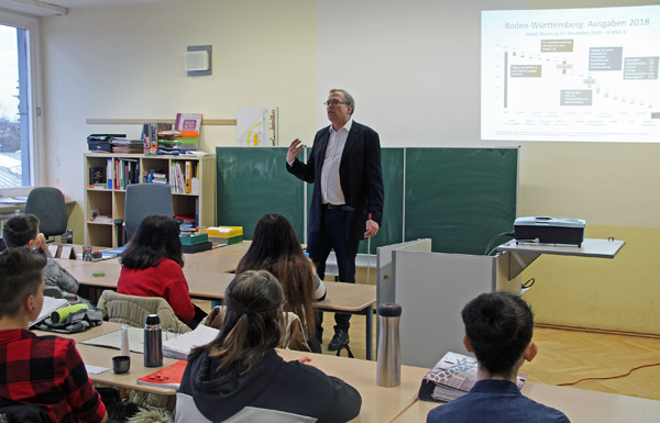 Angelbachtal. Wie wird man eigentlich Abgeordneter und wie sieht die Arbeit im Wahlkreis und in Stuttgart aus? Mit diesen Fragen begann der Landtagsabgeordnete Dr. Albrecht Schütte (CDU) die Unterrichtsstunde an der Sonnenbergschule Angelbachtal. „Ich habe ein Amt, das mir persönlich sehr viel Spaß macht“, so Schütte. Wichtig sei dabei allerdings, die Bodenhaftung nicht zu verlieren und einen guten Beruf zu haben, in den man zurückkehren könne. Man dürfe weder emotional noch finanziell von Politik abhängig werden. Sonst treffe man eventuell Entscheidungen, nur um auf Biegen und Brechen wiedergewählt zu werden. Schütte skizzierte den Schülerinnen und Schülern der 10. Klasse der Sonnenbergschule sein ehrenamtliches Engagement bei der Deutschen-Lebens-Rettungs-Gesellschaft, sowie seinen beruflichen und politischen Werdegang: 1999 wurde Schütte zum Pressereferenten des CDU-Gemeindeverbandes Bammental und 2004 in den Gemeinderat seiner Heimatgemeinde gewählt, in dem er auch heute noch Mitglied ist. Im Jahr 2000 wurde er Zweitkandidat der 2016 aus dem Landtag ausgeschiedenen Abgeordneten Elke Brunnemer und als ihr Nachfolger in das Parlament gewählt.