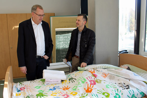 Die Albert-Schweitzer-Schule biete vielfältige schulische und berufliche Bildungswege, von der praxisorientierten Ausbildung als Erzieher bis zum Abitur am sozial- und gesundheitswissenschaftlichen Gymnasium, so Frank. Im anschließenden Gespräch mit den Lehrern Andrea Hanusek und Stefan Schatz, die für den Bereich Altenpflege zuständig sind, ging es vor allem um die Vorbereitung auf die Generalisierung der Pflegeausbildung.