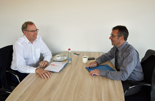 Zu einem intensiven Austausch kamen Oberbürgermeister Jörg Albrecht und der Landtagsabgeordnete Dr. Albrecht Schütte zusammen. „Wir sehen uns häufig bei den verschiedensten Anlässen. Trotzdem ist Zeit für grundsätzliche Gespräche auch immer wieder wichtig“, begrüßte der OB den Abgeordneten.