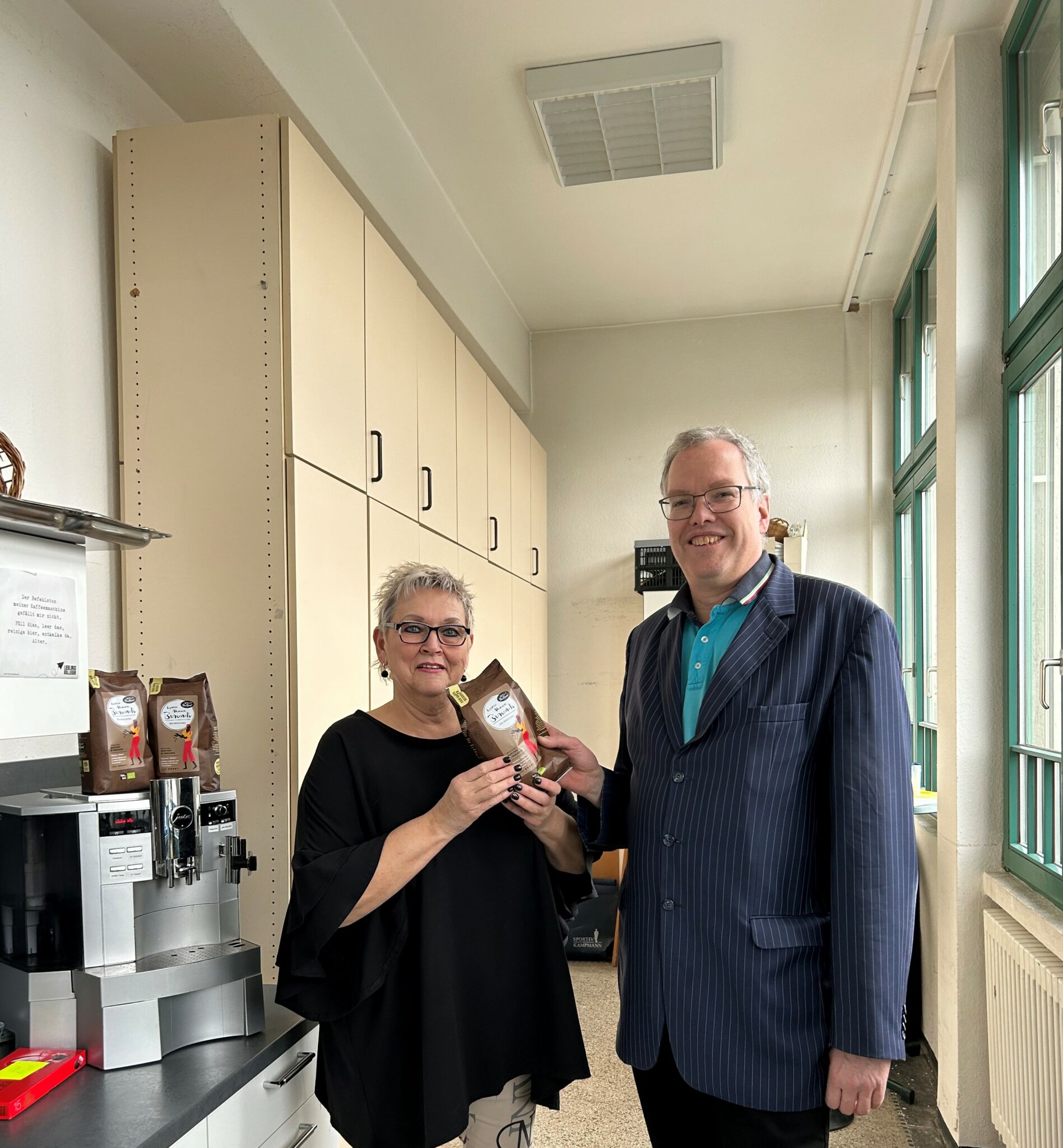Vor einigen Monaten hatte der örtliche Landtagsabgeordnete Dr. Albrecht Schütte eine kleine Auswahl von Kaffee aus Burundi auf dem Bammentaler Rathaus vorbeigebracht. Jetzt freut sich der Bammentaler Bürgermeister, Holger Karl, dass inzwischen die Kaffeeversorgung mit 10 kg pro Monat von einem Direktimporteur dieses ökologischen und fair gehandelten Kaffees geleistet wird. Bei einem Termin vor Ort freute sich auch Conny Hüffner, Assistentin des Bürgermeisters: „Wir haben mit den verschiedenen Sorten experimentiert und nutzen jetzt eine Espresso Mischung, die bei uns geschmacklich sehr gut angekommen ist.“