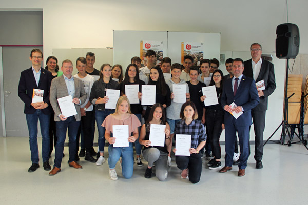 Im Schuljahr 2017/18 haben landesweit über 3.000 Schülerinnen und Schüler von 173 Schulen an dem Wettbewerb teilgenommen. Die vorgegebenen Themen reichten von Naturschutz bis zum problematischen Alkohol- und Drogenkonsum unter Jugendlichen und der weltweiten Terror- und Kriegsbedrohung. Es konnten aber auch eigene Themen gewählt und bearbeitet werden. Von der Kraichgau Realschule wurden 18 Schülerinnen und Schüler für ihre Arbeiten zum Thema Gleichbehandlung bei der Suche nach einem Ausbildungsplatz belohnt. Nicolas Mack erhielt für seine Arbeit sogar einen ersten Preis und darf an einer politischen Studienfahrt teilnehmen. Bei der Preisverleihung in Sinsheim lobten die beiden Abgeordneten die Kreativität und das Interesse der Schülerinnen und Schüler.