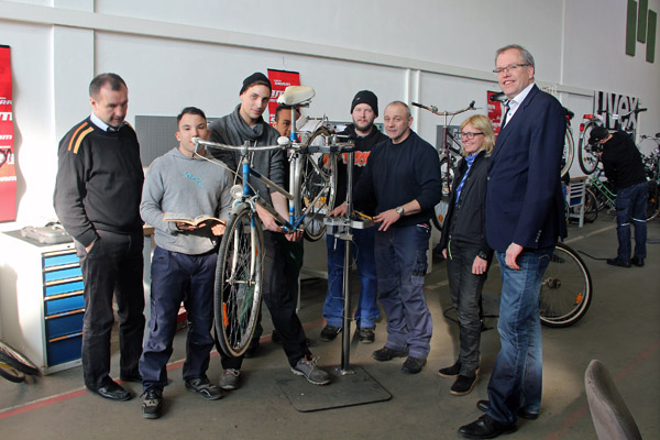 Schütte sagte seine Unterstützung zu: „Wir müssen diese Ressourcen der modernen Technik nutzen und optimieren.“ Bei einem Rundgang durch den Standort Heidelberg schaute Schütte den Auszubildenden über die Schulter und informierte sich über die Inhalte der einzelnen Berufe. Im Gespräch mit Auszubildenden der Fahrradtechnik ließ sich Schütte das Vorgehen bei einer Fahrradreparatur erläutern und fragte nach Rat bezüglich seines eigenen Rades. Die jungen Männer gaben dem Parlamentarier und Hobbyradler nützliche Tipps. Junge Damen, die kurz vor ihrer Gesellenprüfung Teil 1 in der Friseurausbildung stehen, konnten Schütte zwar keinen auf seine Person bezogenen Tipp geben, zeigten dem Abgeordneten aber, wie eine Dauerwelle gemacht wird. Schütte wünschte ihnen viel Glück für die bevorstehende Prüfung.