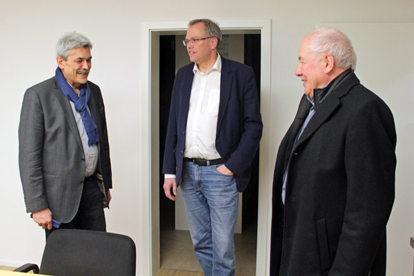 In ihrem Gewerbe sei besonders die Digitalisierung wichtig, da sie große Datenmengen verschicken müssen. „Wir konnten uns bezüglich der EDV-Verteilung sehr früh mit den Bauherren absprechen und hatten freie Gestaltungsmöglichkeiten. Momentan versuchen wir, so viel wie möglich zu digitalisieren, aber ein papierloses Büro – das ist noch eine Illusion“, so Geier. Schütte bestätigte, wie wichtig eine gute Internetversorgung gerade für Gewerbetreibende ist: „Im Zeitalter der Digitalisierung muss es selbstverständlich sein, dass man große Datenmengen versenden und empfangen kann. Daher arbeiten wir daran, die Breitbandversorgung deutlich zu verbessern“, so der Parlamentarier.