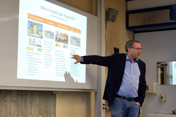 Begrüßt wurde der CDU-Parlamentarier zunächst von Schulleiter Thomas Gißmann, der an die Schülerinnen und Schüler appellierte: „Durch politische Bildung sollt Ihr in die Lage versetzt werden, mündige Staatsbürger zu sein. Deshalb nutzt die Gelegenheit und tretet in den Dialog mit einer Person aus der politischen Praxis.“