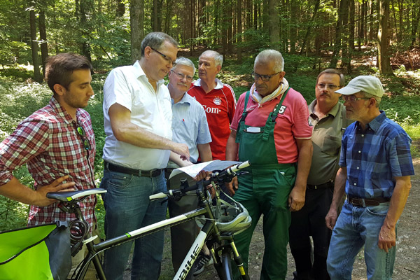 Erster Treffpunkt war in Epfenbach: Gemeinsam mit Bürgermeister Joachim Bösenecker, den Gemeinderäten Manfred Hafner, Günter Reichert, Olaf Krebs und Adrian Ambiel ging es entlang eines möglichen Radweges in Richtung Eschelbronn. „Wenn wir diesen Wiesenweg ausbauen könnten, müssten die Radfahrer nicht mehr direkt auf der Kreisstraße unterwegs sein“, machten die Vertreter ihr Anliegen deutlich. Klar wurde vor Ort auch. wie reizvoll der Weg direkt am Epfenbach liegt, das touristische Potential musste nicht eigens erläutert werden.
