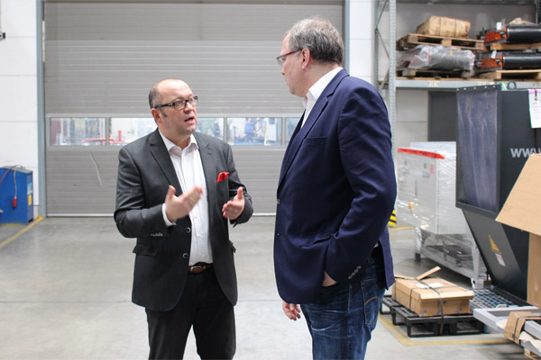 Bei einem Rundgang durch die Hallen des Unternehmens erläuterte Haberkorn dem Landtagsabgeordneten das Alleinstellungsmerkmal des Spezialisten für Recyclinganlagen: die einzigartige Orientierung an den Kundenwünschen. „Wir fertigen hier keine Standardmaschinen, sondern erstellen maßgeschneiderte Lösungen für Unternehmen in der ganzen Welt.“ Dabei würden zu Teilen auch gebrauchte Maschinen grunderneuert, umgebaut und wieder verwendet.